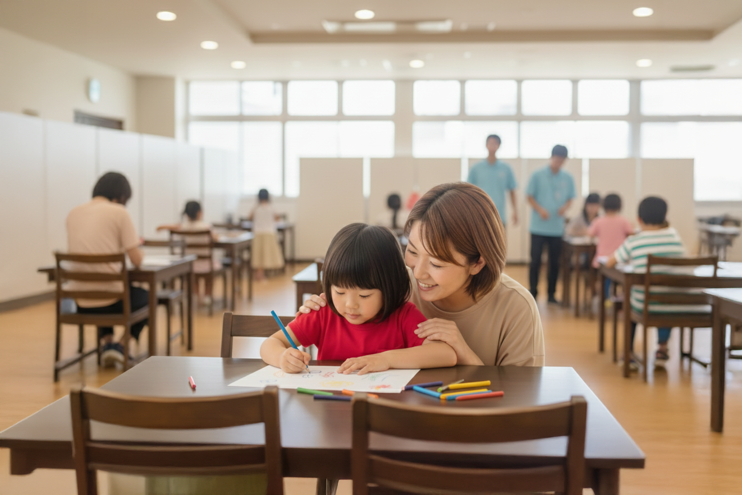 ※待ち時間は、体育館で遊んだり、カフェでひと息つきながらお過ごしいただけます。