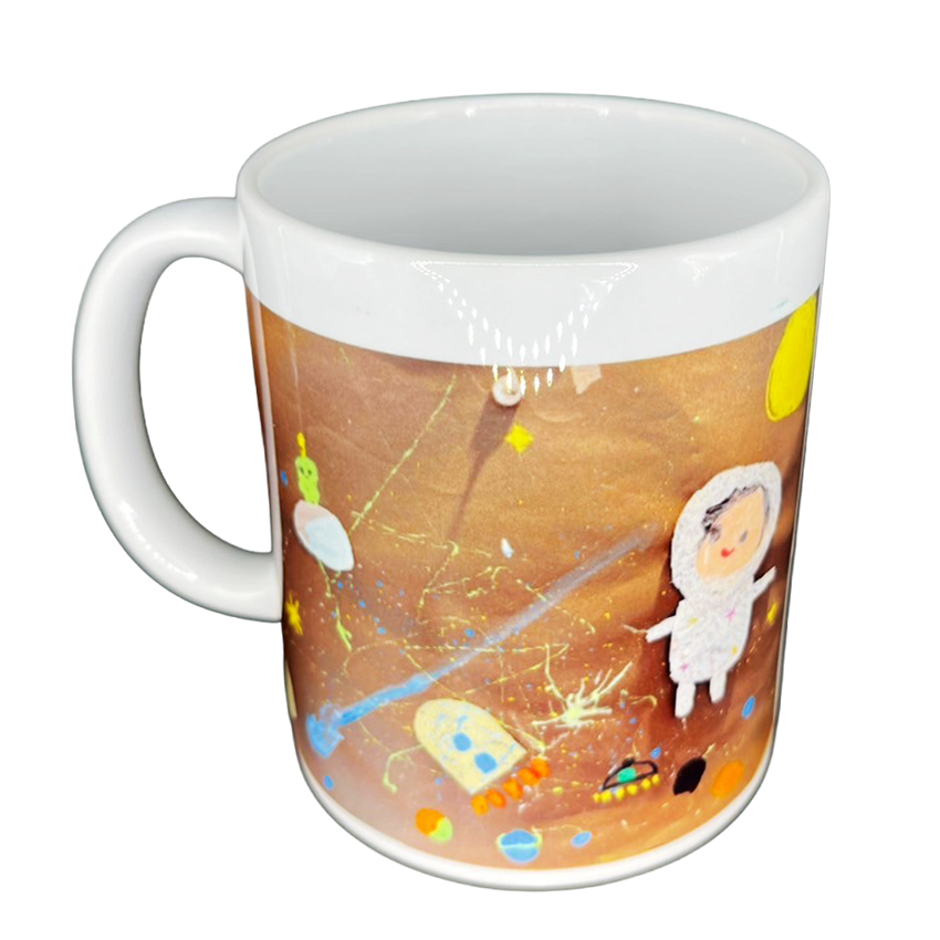 その場で描いた絵や、お気に入りの写真が、あっという間に“オリジナルマグカップ”になります。
